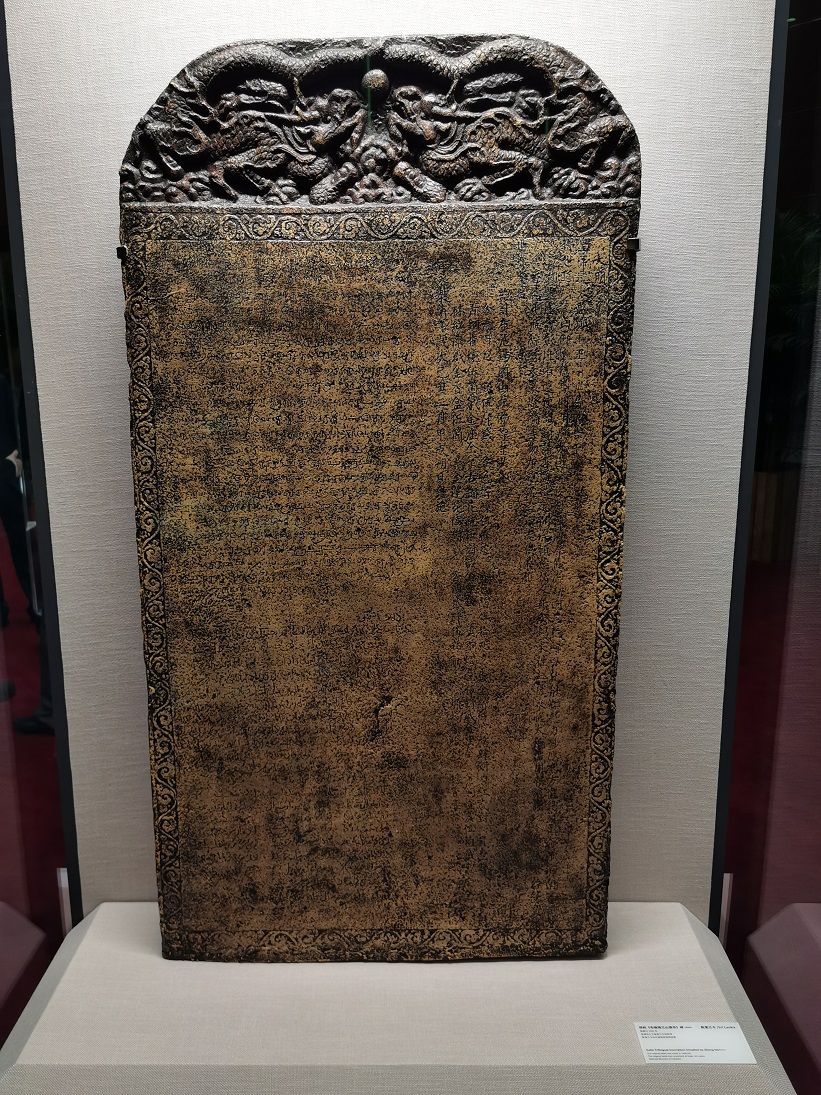△郑和《布施锡兰山佛寺》碑(复制品),原碑于1409年制成,出土于斯里兰卡加勒港,现藏于斯里兰卡科伦坡国家博物馆。(央视记者李铮拍摄)