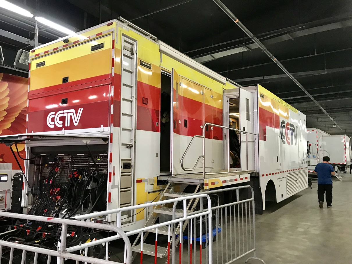 △亚洲文化嘉年华是中央广播电视总台组建以来组织的最大规模的演出活动。这是对亚洲文化嘉年华进行全球直播的转播车。(央视记者魏帮军拍摄)