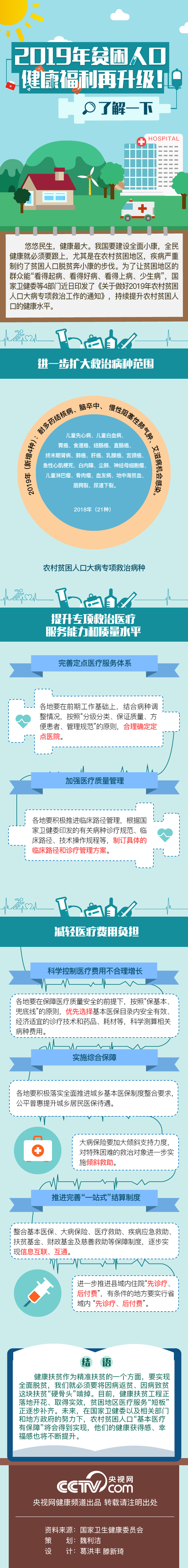 央视网消息:悠悠民生,健康最大。我国要建设全面小康,全民健康就必须要跟上,尤其是在农村贫困地区,疾病严重制约了贫困人口脱贫奔小康的步伐。为了让贫困地区的群众能“看得起病,看得好病,看得上病,少生病”,国家卫健委等4部门近日印发了《关于做好2019年农村贫困人口大病专项救治工作的通知》,持续提升农村贫困人口的健康水平。