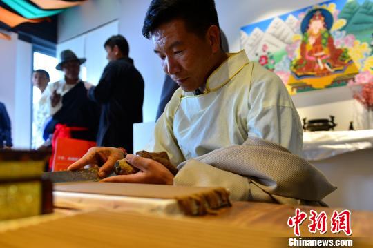 5月16日,拉萨市尼木县农牧民旦增在拉萨市一藏香体验馆教授游客及市民现场制作藏香。旦增说,现在工作稳定,月工资约6000元,收入比之前在家里要高。 江飞波 摄