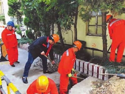 ■ 施工人员正为汇龙幼儿园进行外线施工并安装水表 上海市水务局 供图