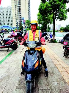 图为:“妈妈骑手”罗荣在送餐的路上。(湖北日报全媒记者 黄璐 摄)