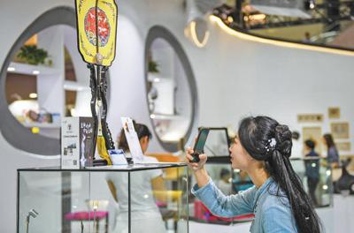 观众在第十五届文博会南京馆参观拍摄。新华社记者 毛思倩摄