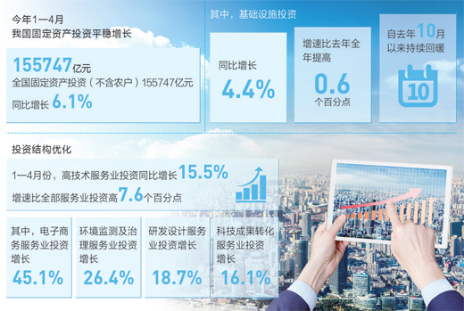 前4月,我国固定资产投资同比增长6.1%,增速比去年全年加快0.2个百分点