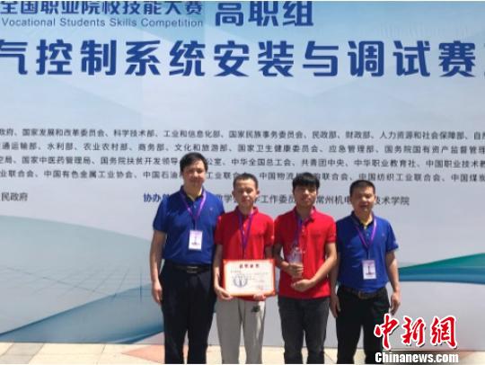 中新网北京5月23日电 (记者 张素)记者23日从中国教育部获悉,在日前举行的2019年全国职业院校技能大赛上,贵州电子信息职业技术学院机电工程系学生肖港、梁宇晨摘得高职组“现代电气控制安装与调试”赛项团体一等奖。