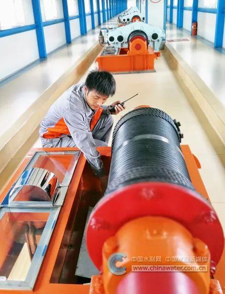 屈家店枢纽永定新河进洪闸助理工程师曹承岳检测工作闸门试运行情况 记者 李先明/摄