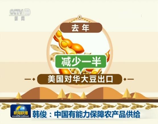 韩俊表示,中国减少自美进口大豆,对国内市场大豆供应影响有限。目前,正在采取多种有效措施,保障大豆供需平衡。包括实施国产大豆振兴计划,预计到2020年,大豆种植面积将达1.4亿亩,总产量增至1900万吨;通过改进饲料配方,每年可减少大豆需求1400万吨;同时,俄罗斯以及南美国家更多的大豆也正在进入中国市场。