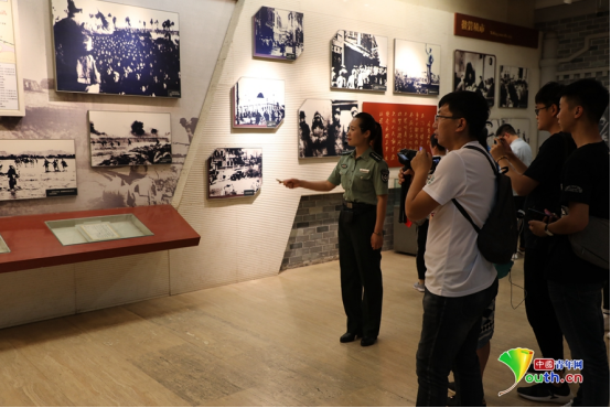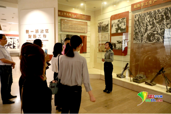 摄制团队在西柏坡纪念馆聆听讲解。中国青年网记者 曾繁华 摄