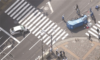 4月19日,日本东京。当天,池袋车站附近的马路发生一辆小客车冲撞行人与垃圾车的事故,共造成2人死亡,9人受伤。肇事车主是一名80多岁的男性。(视觉中国)