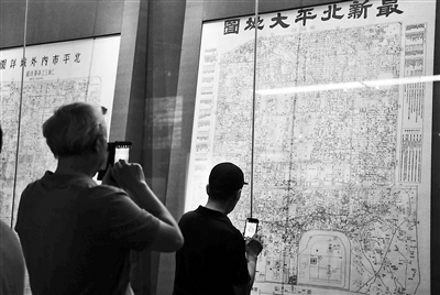 观众在观看老北京地图摄影/本报记者 袁艺