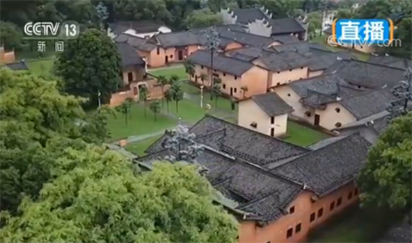 你现在看到的是江西瑞金。瑞金被誉为红色故都、共和国的摇篮。画面中这片掩映在古树中的建筑,是叶坪革命旧址群。1931年11月7日,中华工农兵苏维埃第一次全国代表大会在这里召开。宣告中华苏维埃共和国临时中央政府成立。