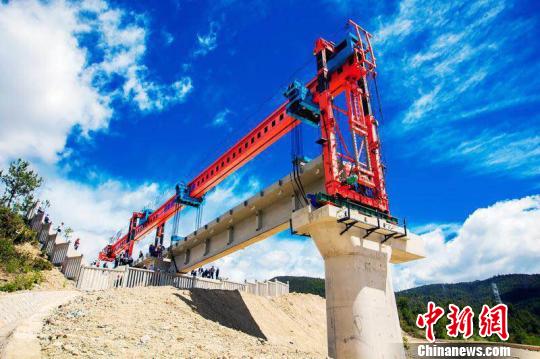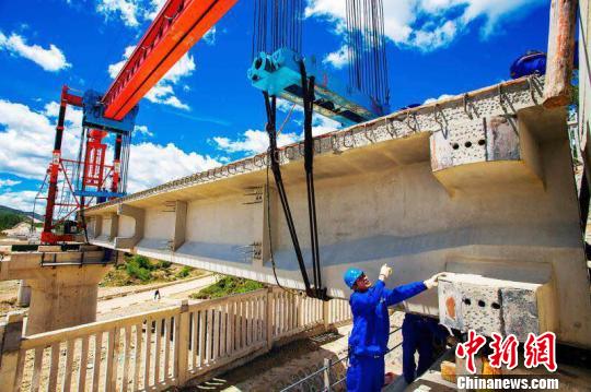 图为丽香铁路开始第一片T梁架设。 陈畅 摄
