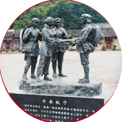 湖南汝城县沙洲村的“半条被子”雕塑。