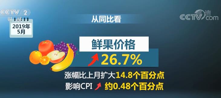从同比看,CPI涨幅比上月扩大0.2个百分点,其中,食品价格影响CPI上涨约1.48个百分点,特别是鲜果价格首当其冲,涨幅处于历史高位,影响CPI上涨约0.48个百分点。