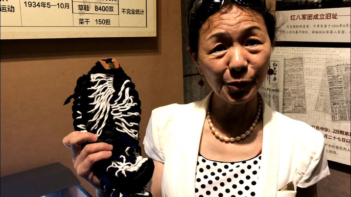 6月11日,于都中央红军出发纪念馆,从深圳来了两位特殊的讲解员。她们是谢福坚的三女谢婷和四女谢建华。纪念馆内陈列的黄麻绣球草鞋,正是当年春秀送给他们父亲的那一双。