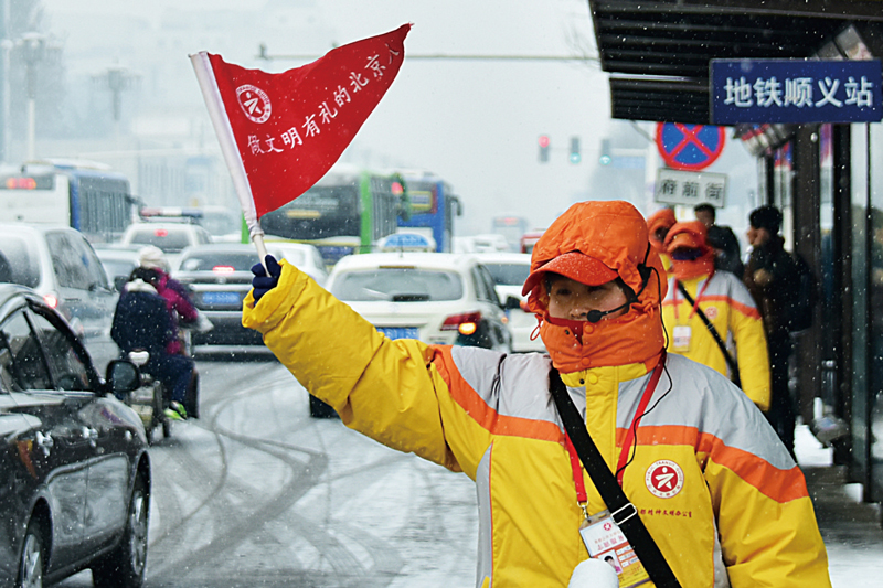 18年来,北京市“文明引导员”队伍,已发展到9000多人。