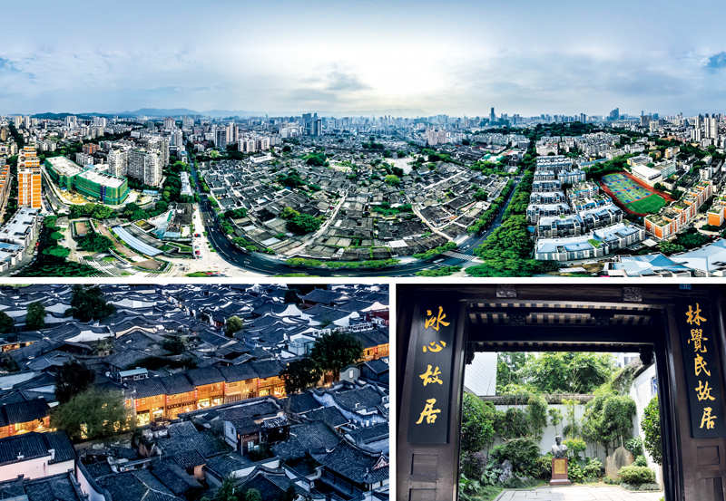 “一片福州三坊七巷,半部中国近代史。”20多年前,在时任福州市委书记习近平主持下,一场抢救林觉民故居的紧急行动,让三坊七巷保住了文脉,留住了乡愁。上图为福建省福州市三坊七巷航拍图(杨素平/视觉中国)。左下图为三坊七巷夜色(陈浩/视觉中国)。右下图为林觉民故居,后被冰心祖父买下(小米/视觉中国)。