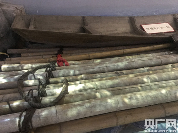 1935年1月,红军抢渡乌江时使用的双层竹筏。(中央广播电视总台央广记者 陈屹 摄)