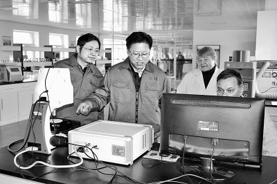鹤岗华升石墨股份有限公司的专家们在检测石墨烯质量。资料图片