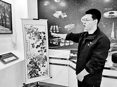 七台河市宝泰隆新材料有限公司工作人员介绍公司研发的石墨烯卷轴画。张心觉摄/光明图片