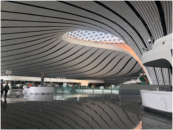 另外一“新”便是被英国《卫报》誉为“新世界第七大奇迹“的北京大兴国际机场。一走进航站楼,新机场便给人呈现出一种现代化艺术感十足的感觉,并且从不同角度看,整个大厅流线型的设计给人以柔美的感觉。