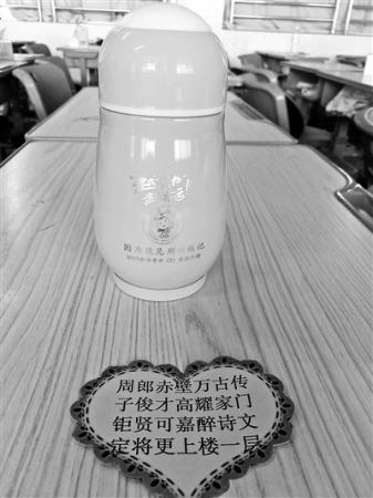 除了诗以外,郑有海还在网上购买了茶杯送给学生,杯子上印有“越努力,越幸运”。郑老师说,“杯子谐音‘一辈子’,希望学生们能一辈子记得老师,也一辈子都能够努力。”(文/本报记者 郭琳琳)