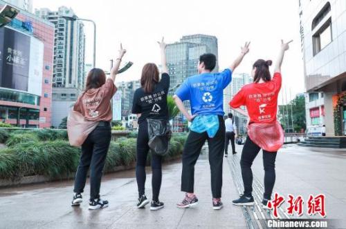 资料图:2019年6月, 青年志愿者们在上海参加“环保跑拾活动”,身体力行宣传垃圾分类知识。 申海 摄