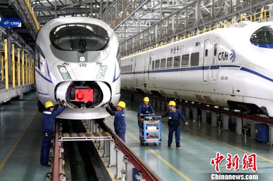 上海虹桥动车运用所加强动车组检修。 许文峰 摄