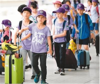 7月1日,参加夏令营的小朋友在西安北站进站乘车。