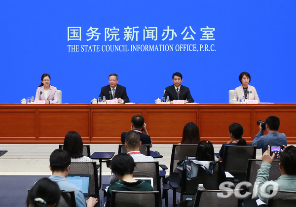 政策例行吹风会主席台(赵一帆 摄)