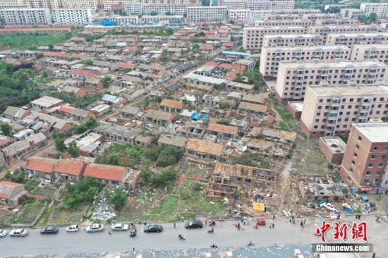 7月4日,辽宁开原,航拍遭受龙卷风袭击现场。中新社记者 沈殿成 摄