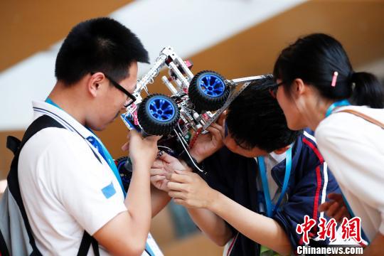 选手在赛前调试智能机器人。 汤彦俊 摄