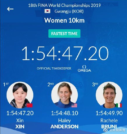 2019国际泳联世锦赛正在韩国进行,在今天上午结束的女子10公里游泳比赛中,中国选手辛鑫发挥出色,以1小时54分47秒20的成绩夺得冠军!这是中国队历史上的第一枚世锦赛公开水域游泳金牌!