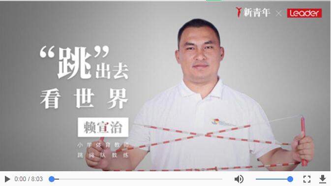 大家好,我是新青年赖宣治,是一名小学体育老师。我还有一个特殊的身份,那就是世界跳绳冠军队——七星小学跳绳队的教练。