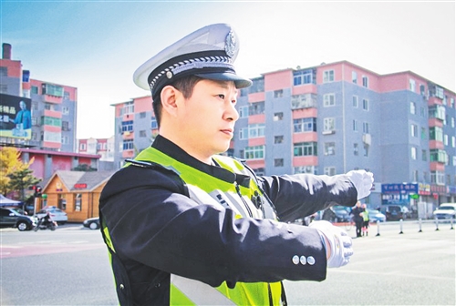 辽宁锦州滨海新区交警大队大队长王志海在执勤。 (资料图片)