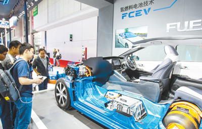 在2019上海国际车展上,一辆氢燃料电池技术汽车吸引人们驻足观看。影像中国