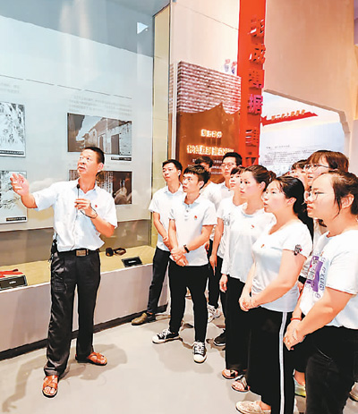 福建武夷山市依托当地红色文化资源,在党员干部中广泛开展“不忘初心、牢记使命”主题教育活动。图为6月27日,党员干部在位于武夷山市的上梅暴动陈列馆参观学习。新华社记者 张国俊摄