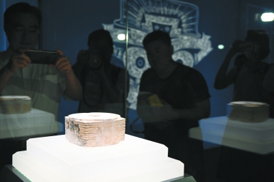 图为玉璧,一般被认为是祭天用的礼器,也有学者认为是财富的象征。 昨天,“良渚与古代中国——玉器显示的五千年文明展”在故宫武英殿开展,是良渚古城遗址申遗成功后首次隆重亮相。记者 李继辉摄