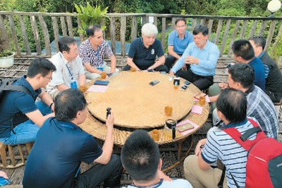7月12日的媒体见面会上,普洱市委副书记、思茅区委书记陆平同参加采风活动的华文媒体代表座谈。(除署名外均为唐哲摄)