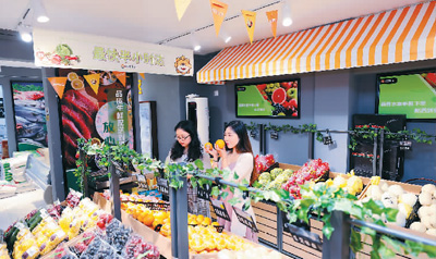 苏宁小店主打生鲜、果蔬、热鲜食等品类,致力打造成社区的“共享冰箱”。图为苏宁小店内景。(苏宁供图)