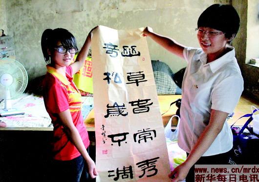 在“手拉手、共成长”活动中,石外学生向山区学校小伙伴赠送书法作品。受访者供图