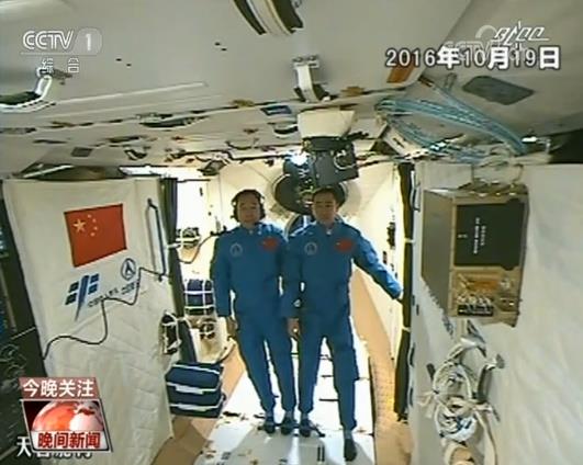 2016年10月19日 神舟十一号飞船与天宫二号自动交会对接成功。航天员景海鹏、陈冬进入天宫二号。开始了长达30天的太空生活,创造了目前中国载人航天飞行时间最长的纪录。