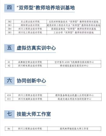 四川新闻网成都7月24日讯(记者 陈淋)近日,教育部印发通知,公布《高等职业教育创新发展行动计划(2015—2018年)》项目认定结果。我省106个骨干专业、41个生产性实训基地,9所优质专科高等职业院校,4个“双师型”教师培养培训基地、2个虚拟仿真实训中心、2个协同创新中心、1个技能大师工作室榜上有名。