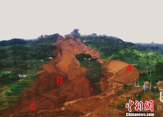 贵州水城山体滑坡救援现场划分的A、B、C救援区域。 中国安能第一工程局 供图