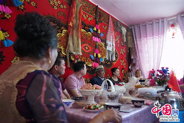 2019年6月27日,李金生和村民们聚在孜叶肯·哈利卡拜家。中国网记者 董小迪 摄