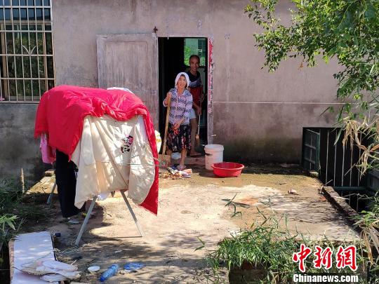 罗银芽和丈夫打扫家里的卫生。 王昊昊 摄