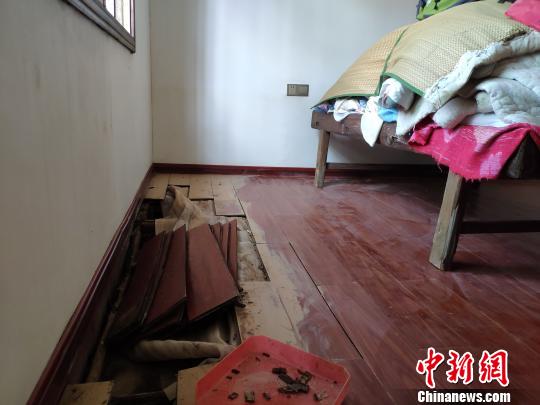 罗银芽家里的木地板损坏。 王昊昊 摄