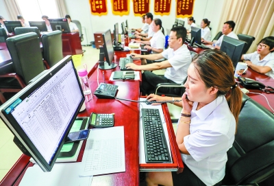 7月10日,在位于大兴区的全市首家“接诉即办”调度指挥中心,工作人员在接听群众来电。记者 武亦彬 摄