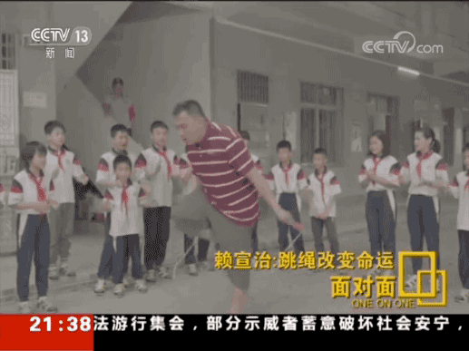 赖宣治:我不仅能教会孩子强身健体,还能教会他们怎么为梦想去拼搏,学会坚持和有自信。一根绳子能把他们留在这里,让他们有一个安稳的学习机会,让他们交到更多的朋友,带他们到全世界各地去看去了解,也让他们为个人为祖国带来荣誉。我坚持用跳绳留住这些人,一切都是值得的。