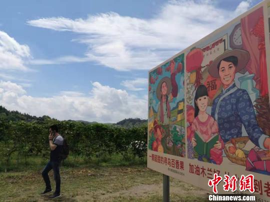 7月29日,江西省寻乌县一口甜百香果专业合作社基地广告牌,“一颗超甜的寻乌百香果”。 王剑 摄